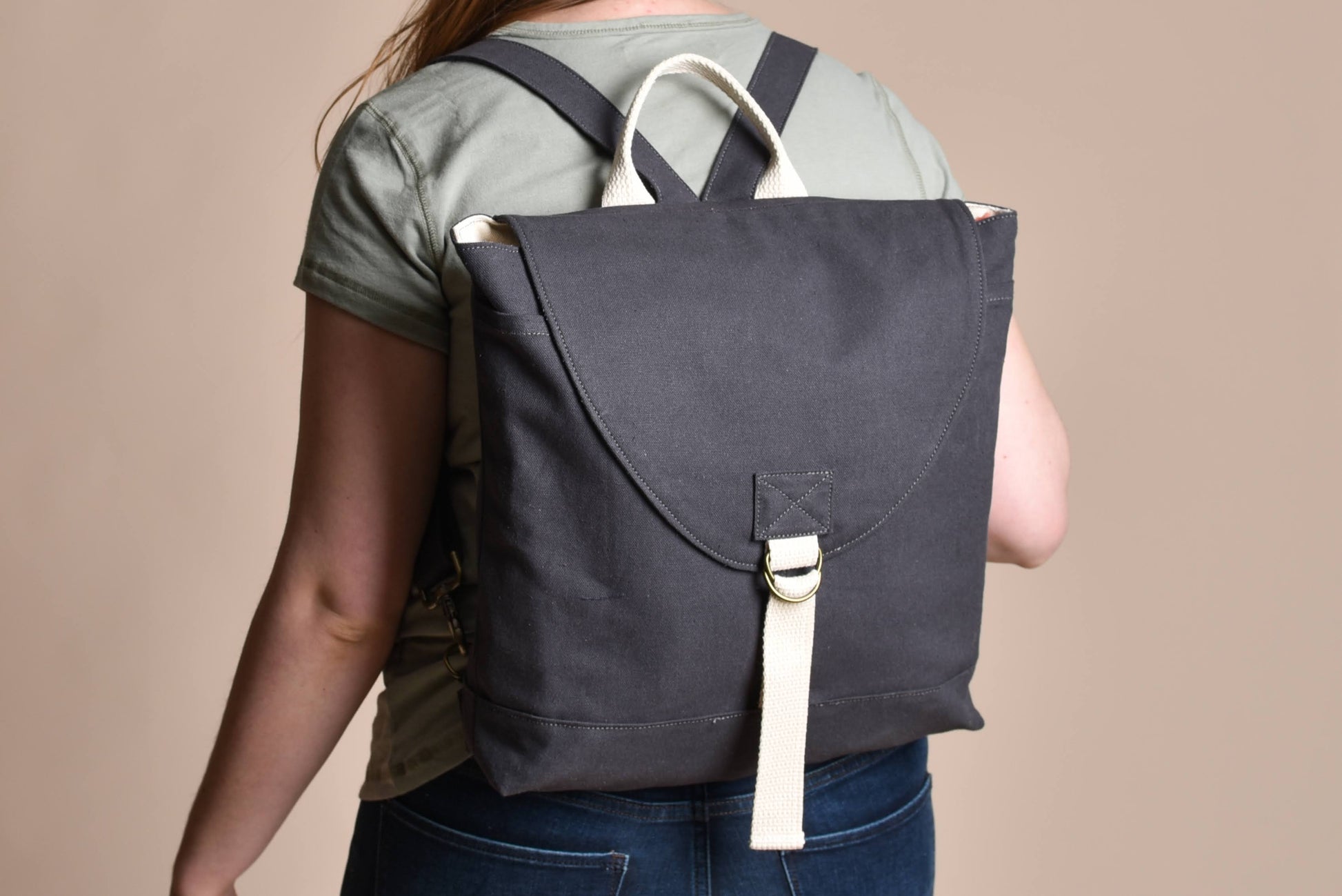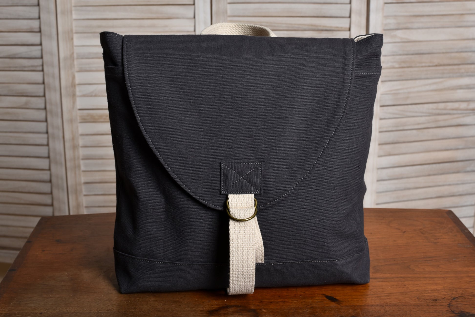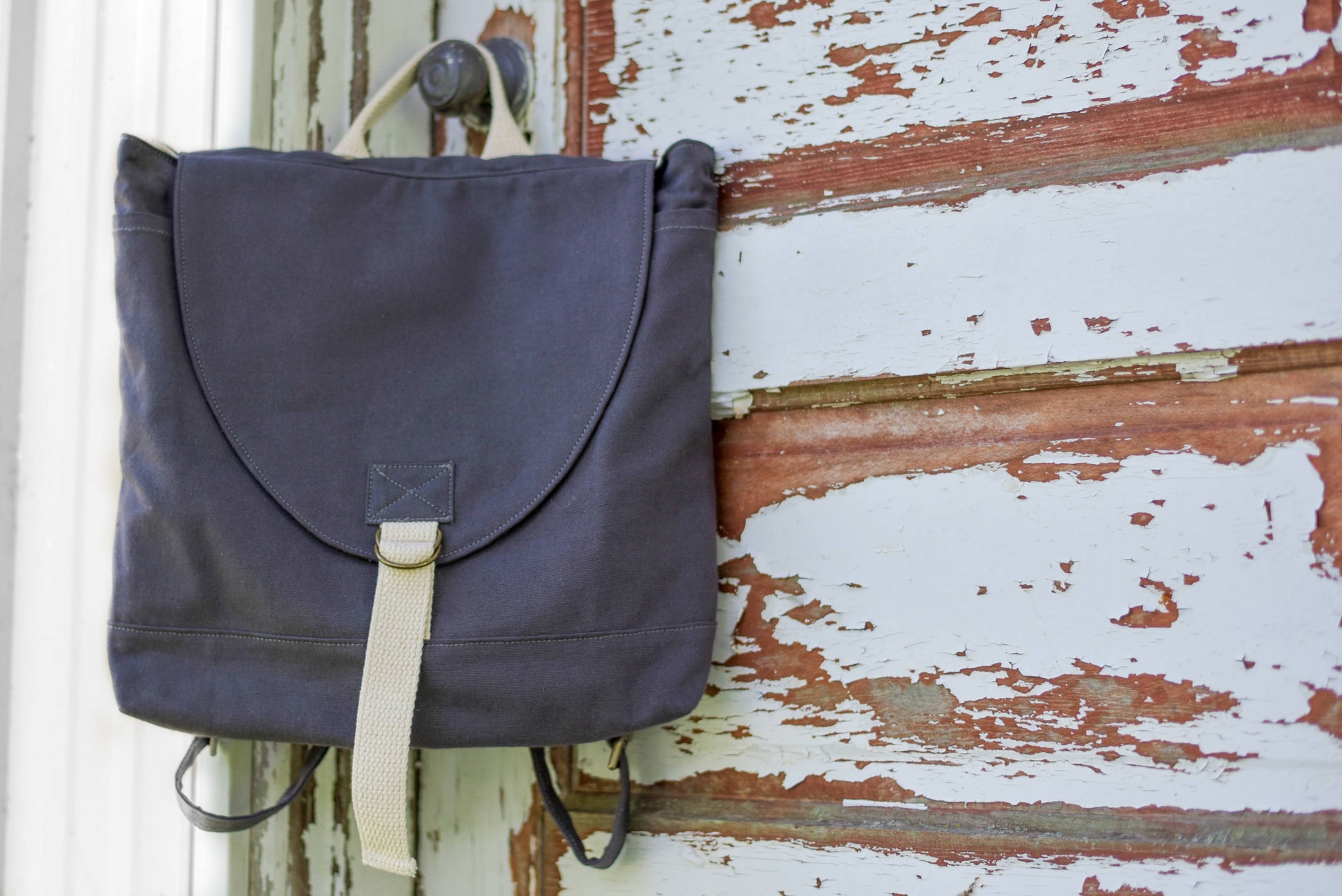 Inspired by the adventures within, this backpack is handmade from cotton canvas and metal hardware sourced within the USA. It's fully lined with natural colored canvas. The exterior boasts two spacious pockets. The interior features one zipper pocket and 2 roomy slip pockets. The top closes with a flap and D ring buckle.
