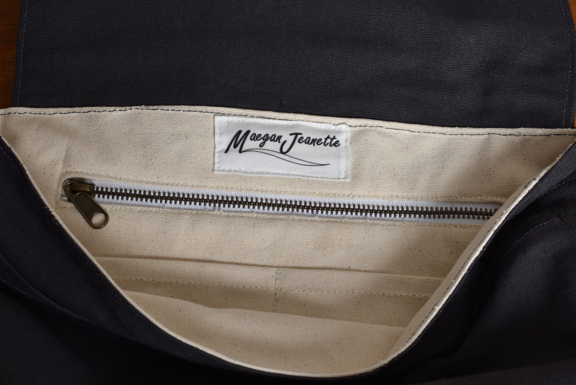 Materials: Cotton canvas , Natural cotton canvas lining, Antique brass hardware