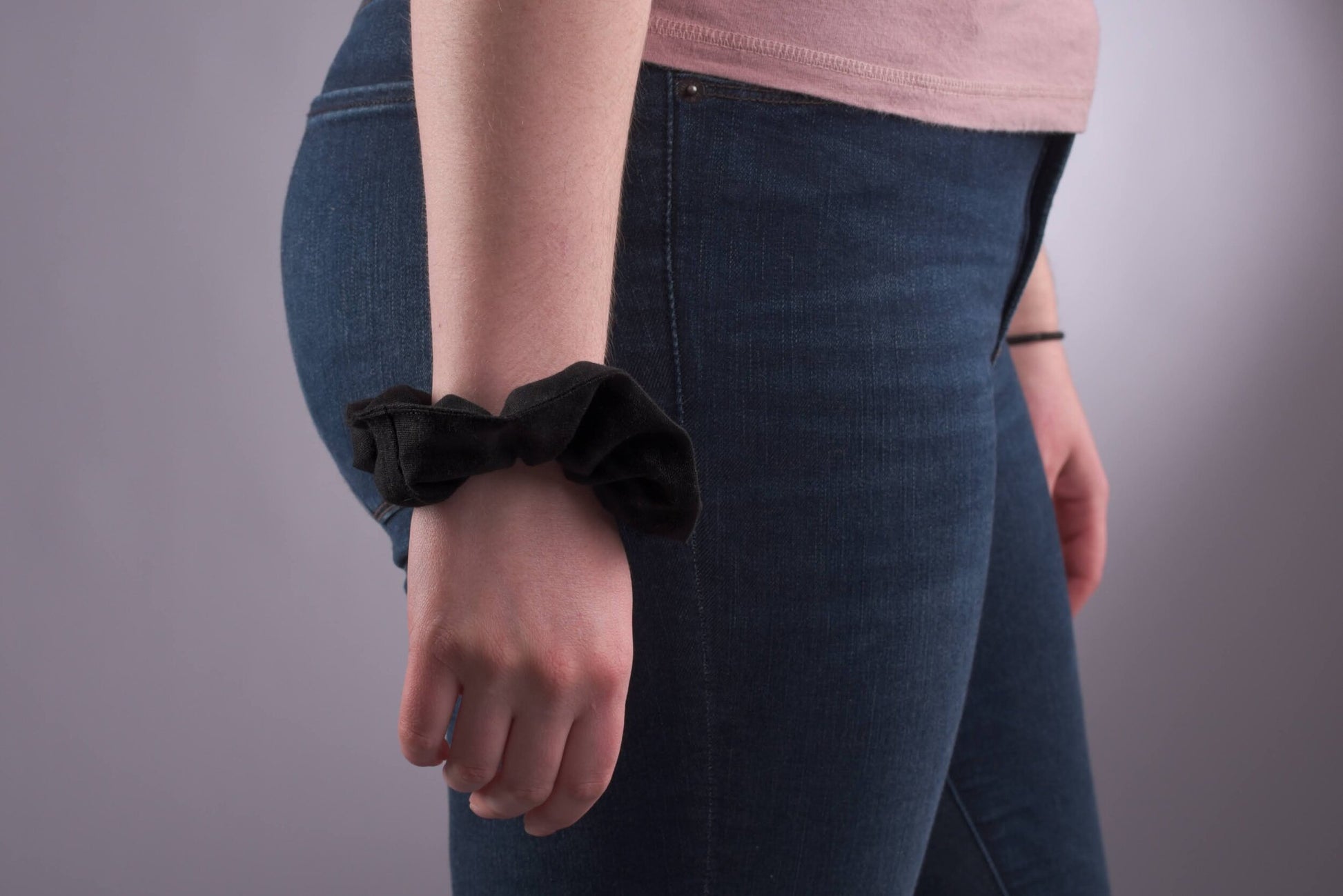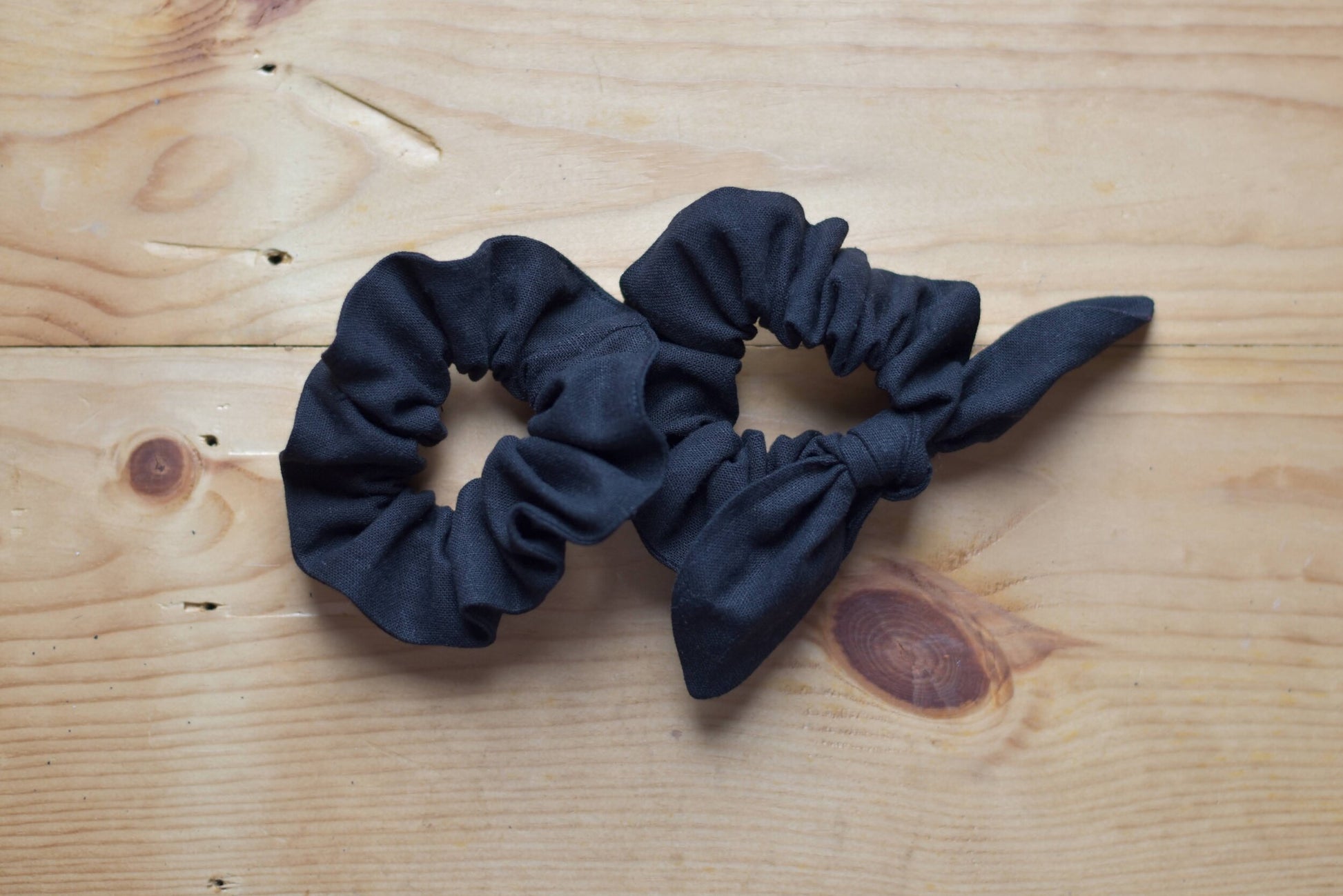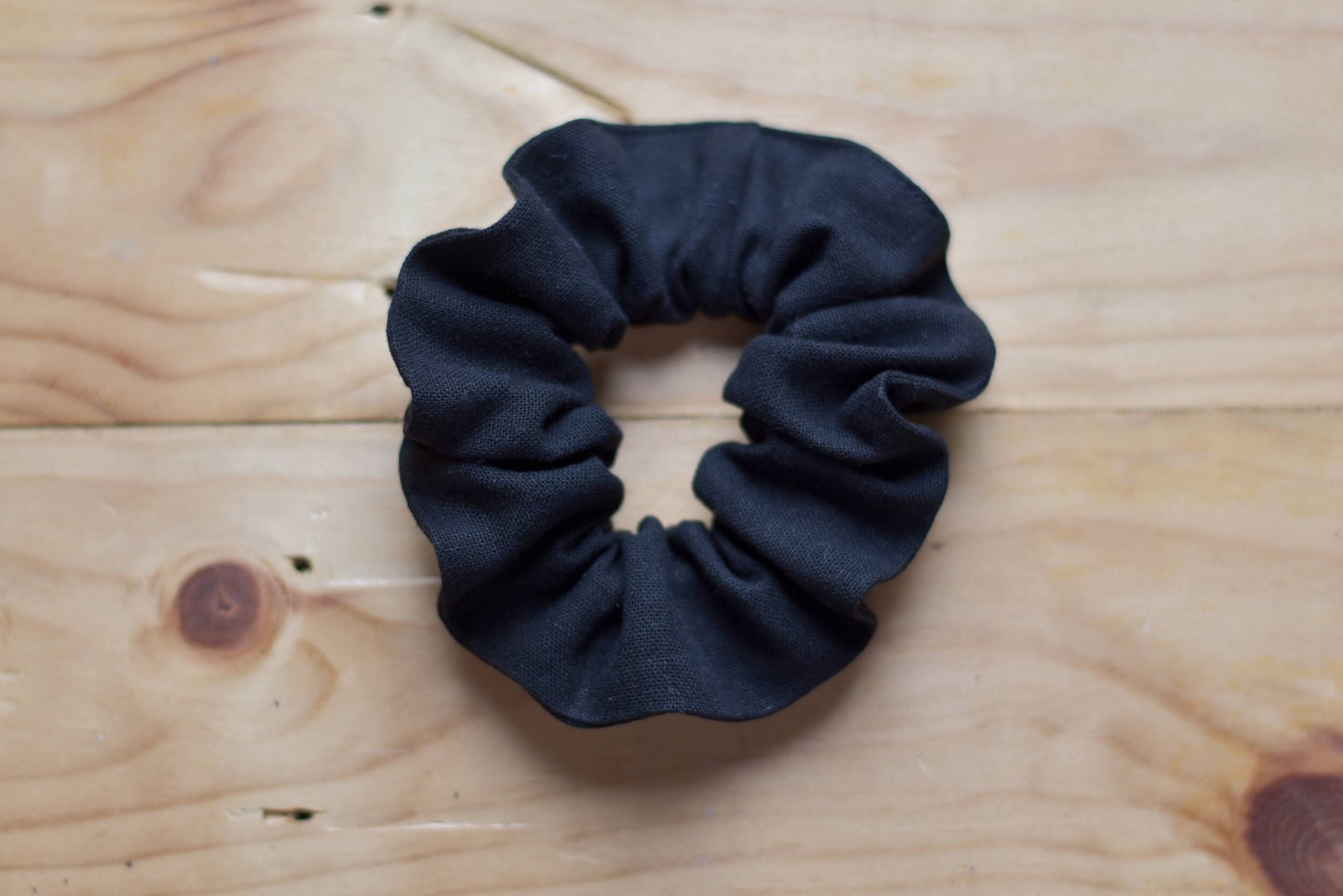 Beautiful full fabric scrunchie fits perfectly around wrist and wraps 2-3 times around hair depending on thickness. Every scrunchie is hand cut & sewn with flat elastic secured inside and stitched for a long lasting accessory you can use time and time again.