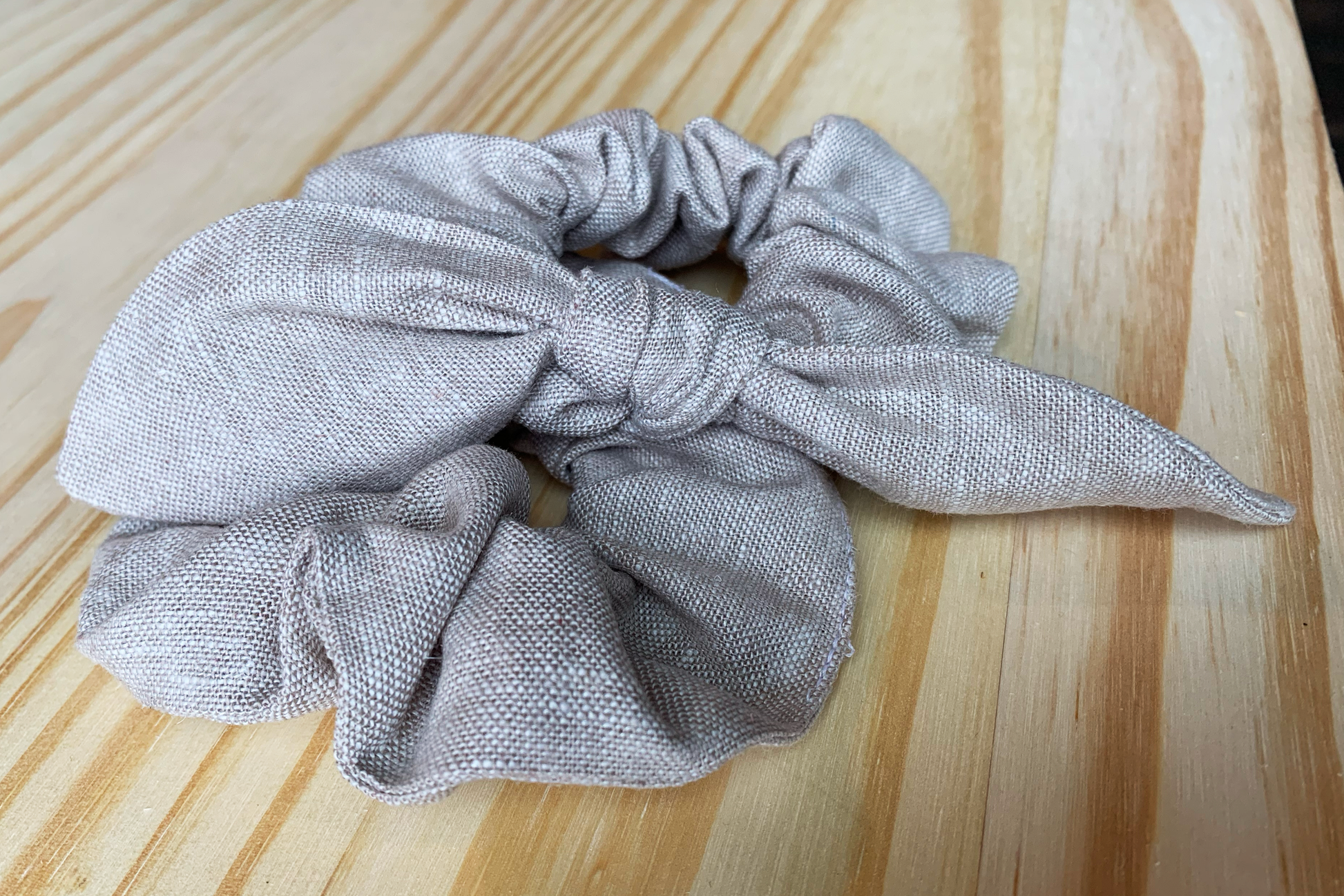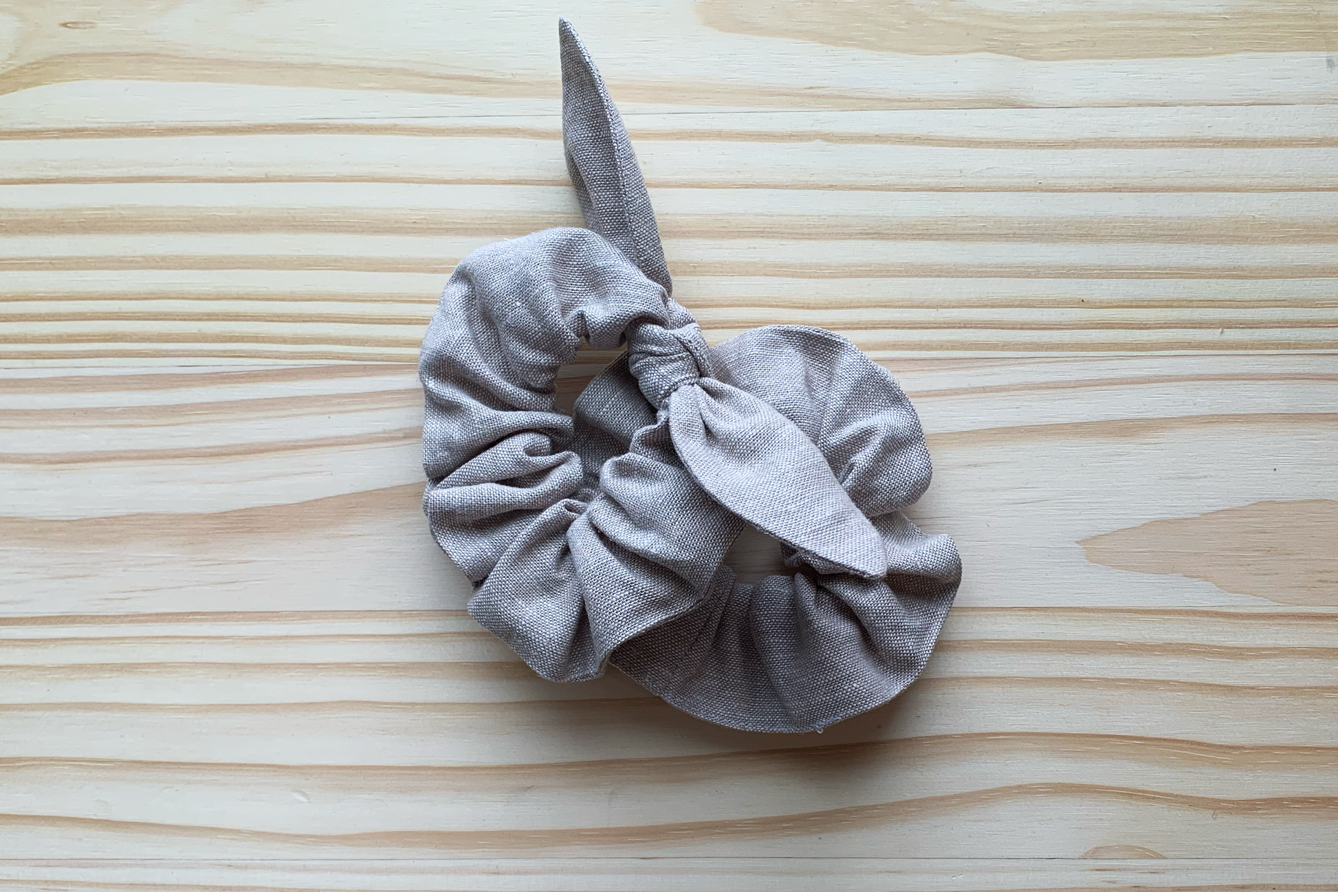 Beautiful full fabric scrunchie fits perfectly around wrist and wraps 2-3 times around hair depending on thickness. Every scrunchie is hand cut & sewn with flat elastic secured inside and stitched for a long lasting accessory you can use time and time again.