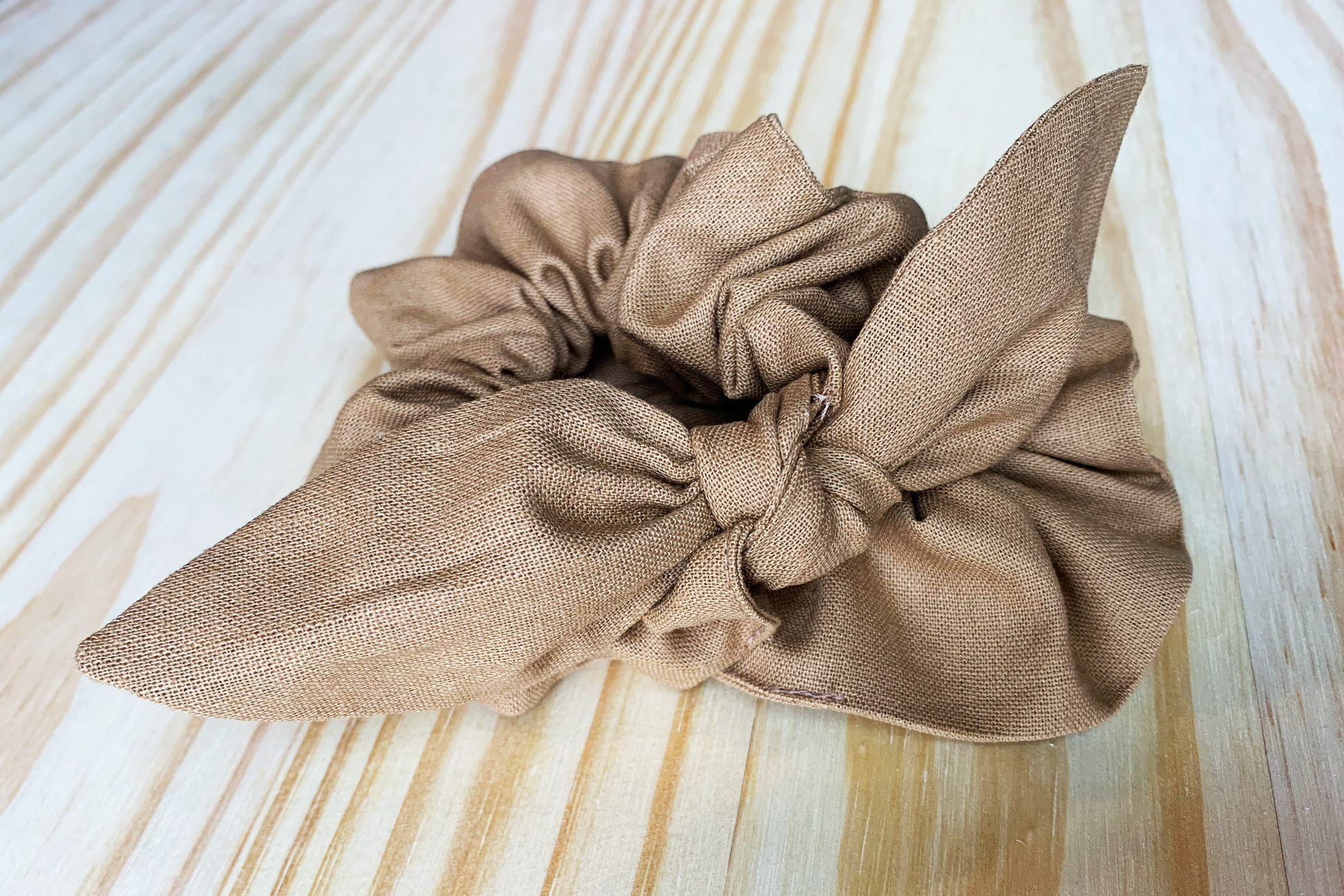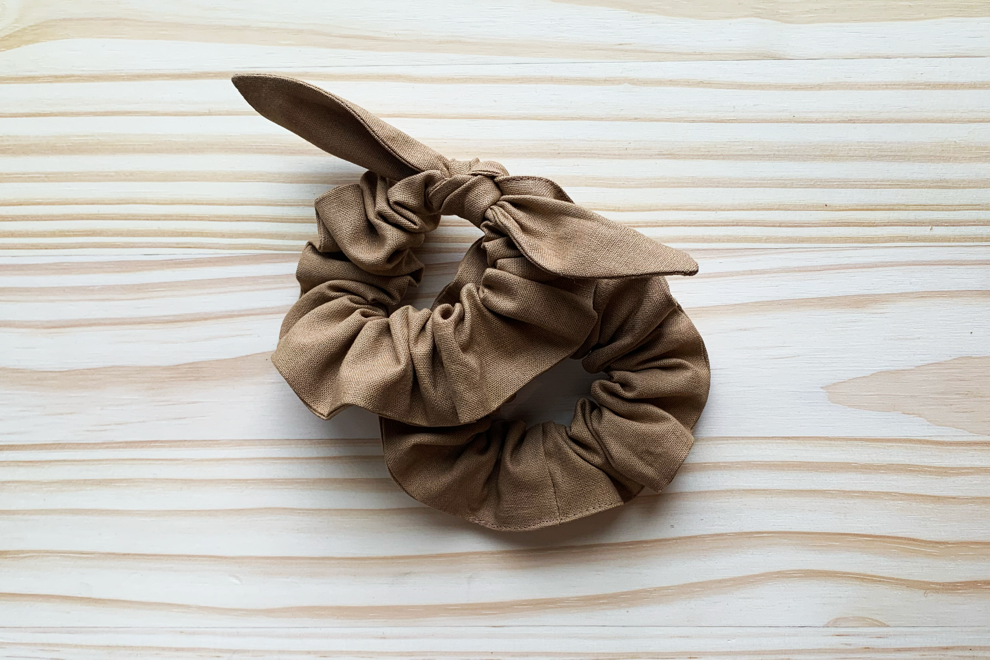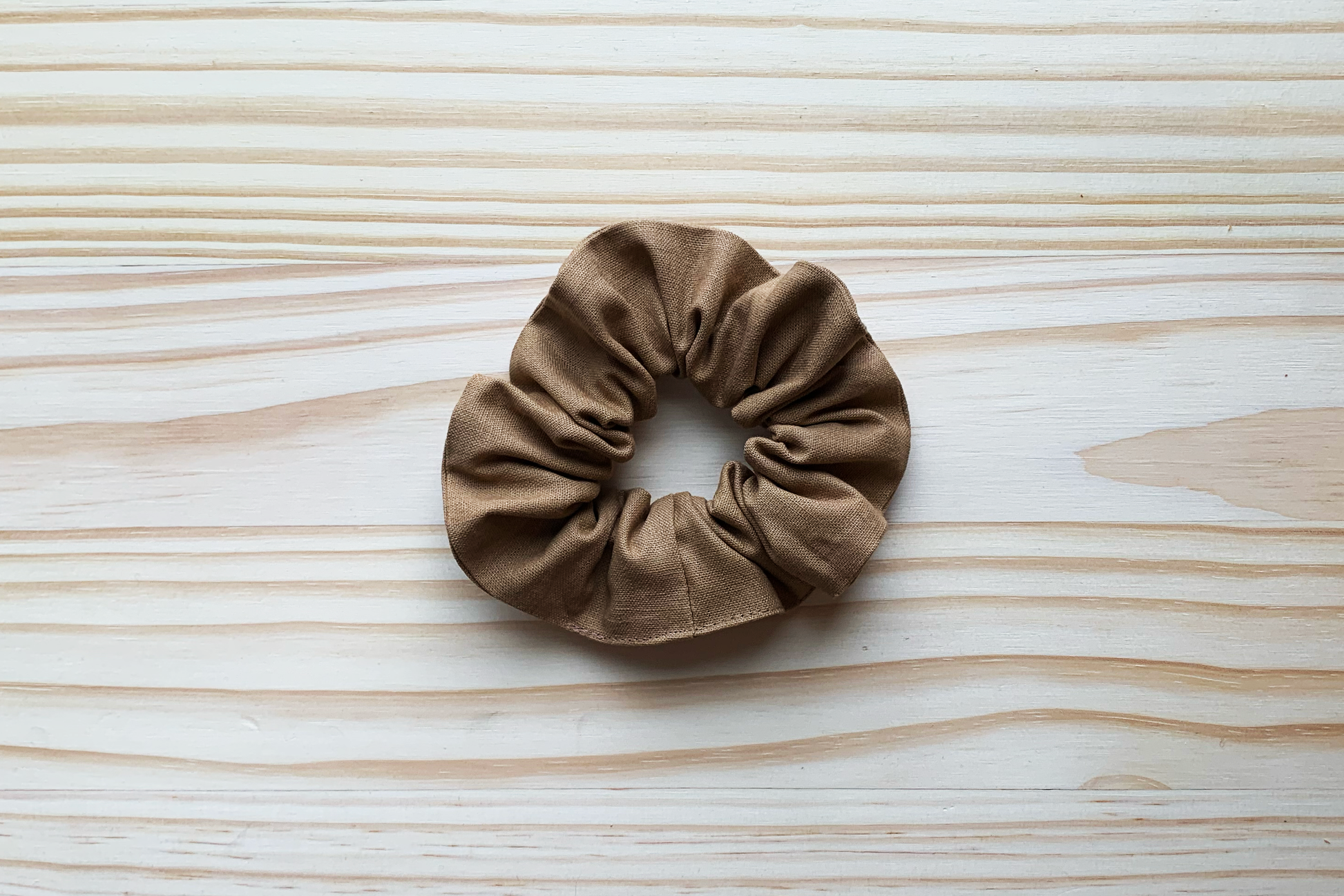 Beautiful full fabric scrunchie fits perfectly around wrist and wraps 2-3 times around hair depending on thickness. Every scrunchie is hand cut & sewn with flat elastic secured inside and stitched for a long lasting accessory you can use time and time again.