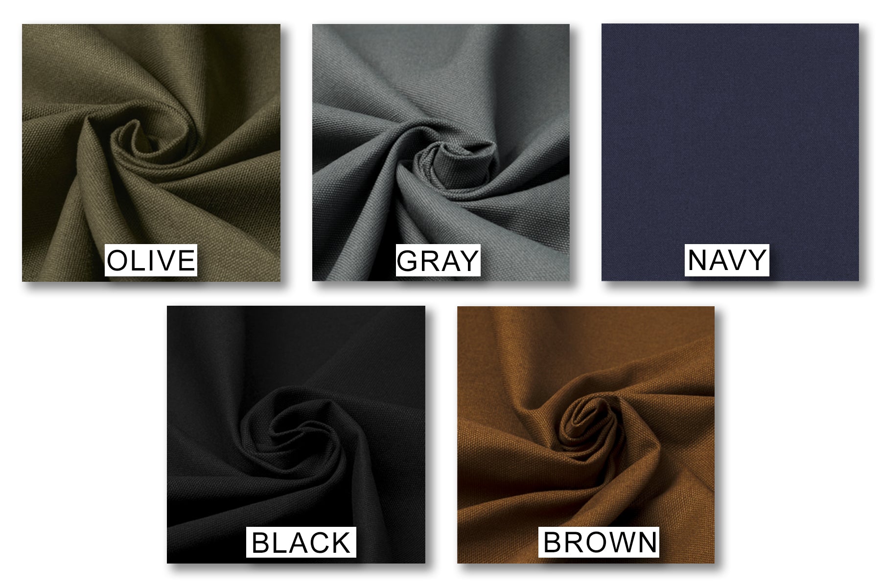 Pick your favorite choice of color from our cotton canvas: Navy, Olive, Black, Brown, Gray