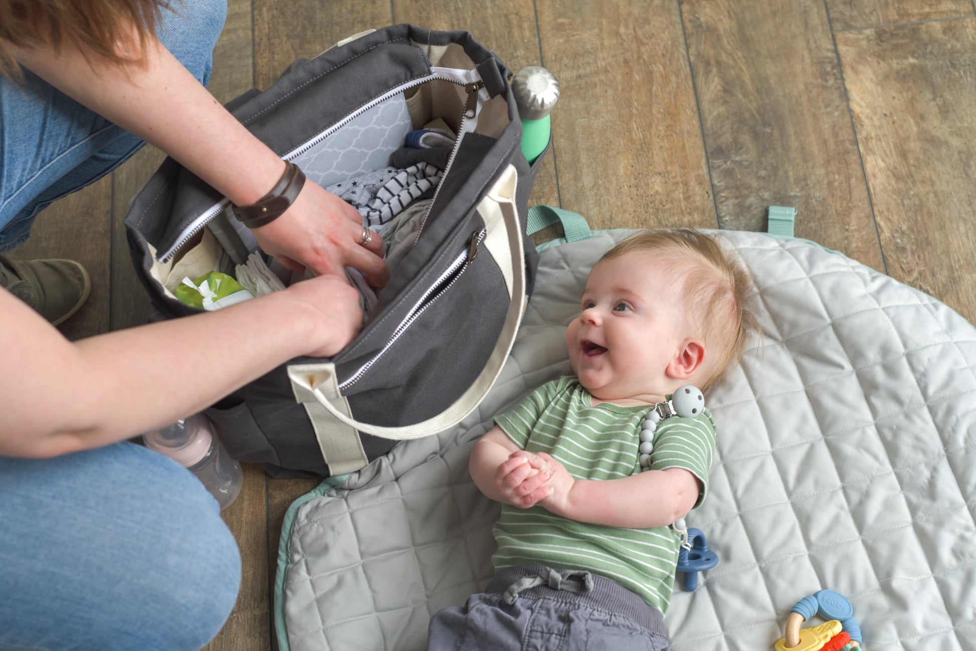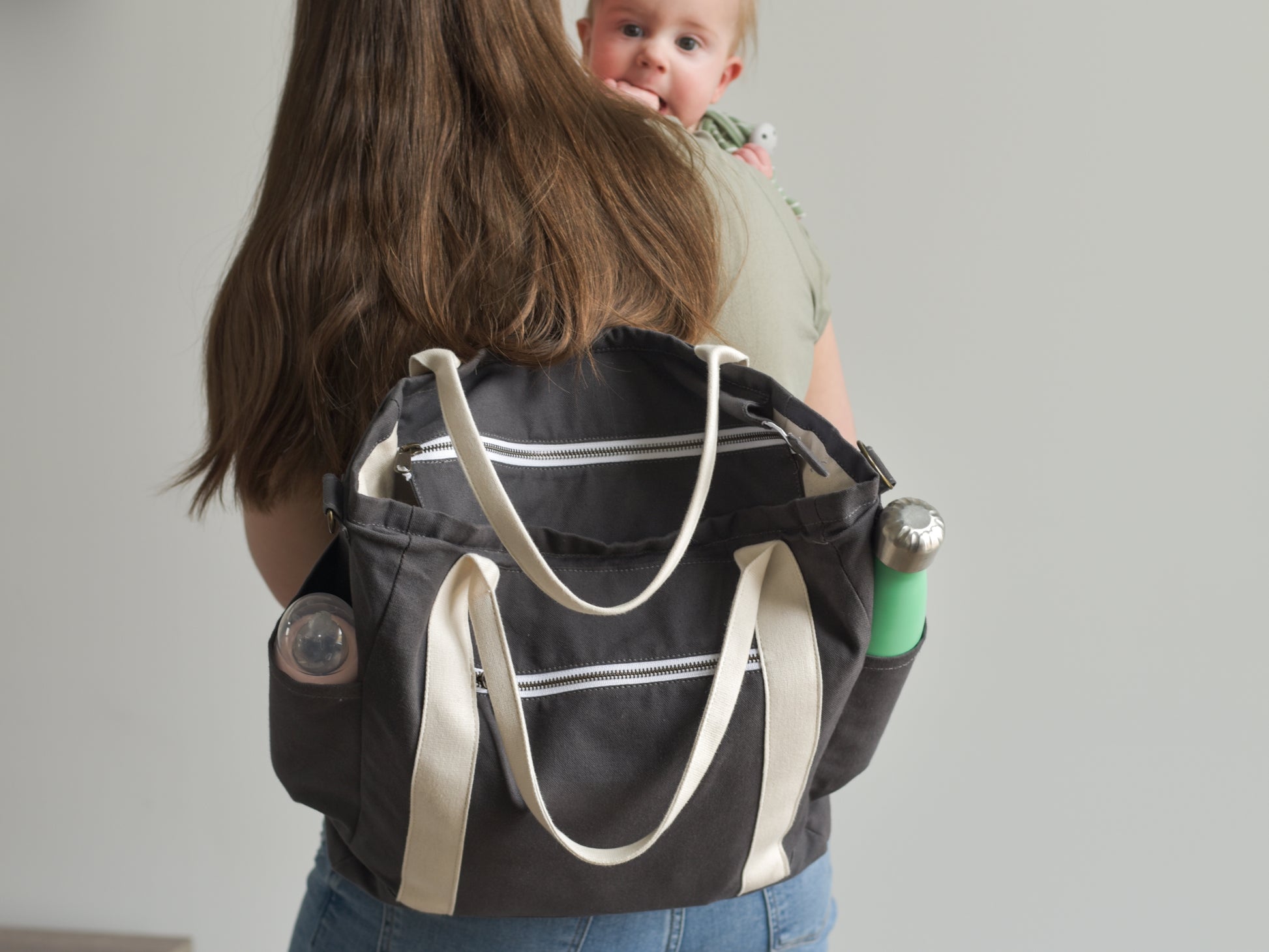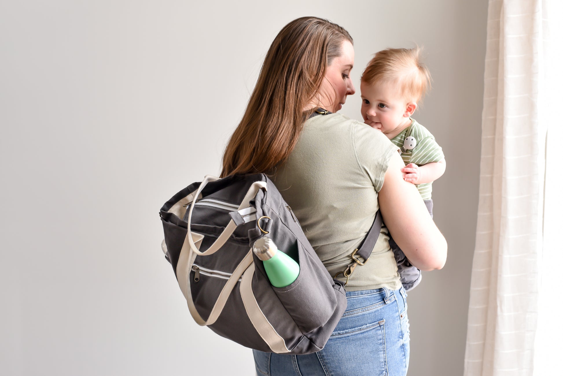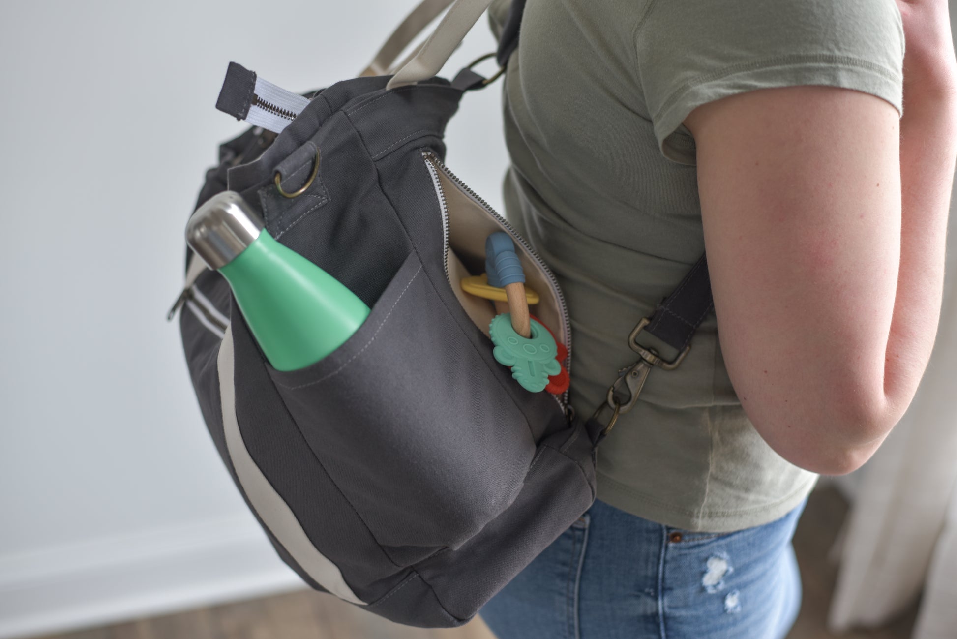 This diaper bag has every feature you could want in a diaper bag! It's convertible from a backpack to a crossbody bag with handles for a quick pick-up. 2 exterior zipper pockets, one hidden and reachable while wearing as a backpack. 2 side pockets for water bottles or baby bottles. 4 interior slip pockets. 1 interior zipper pocket. Zipper top closure that can be left open to easily reach the entire bag. The main compartment has capacity to hold, diapers, changing pad, wipes, extra clothes, and snacks! I've personally used this back for 3+years through babies and it is the only bag I could ever imagine carrying for my babies.