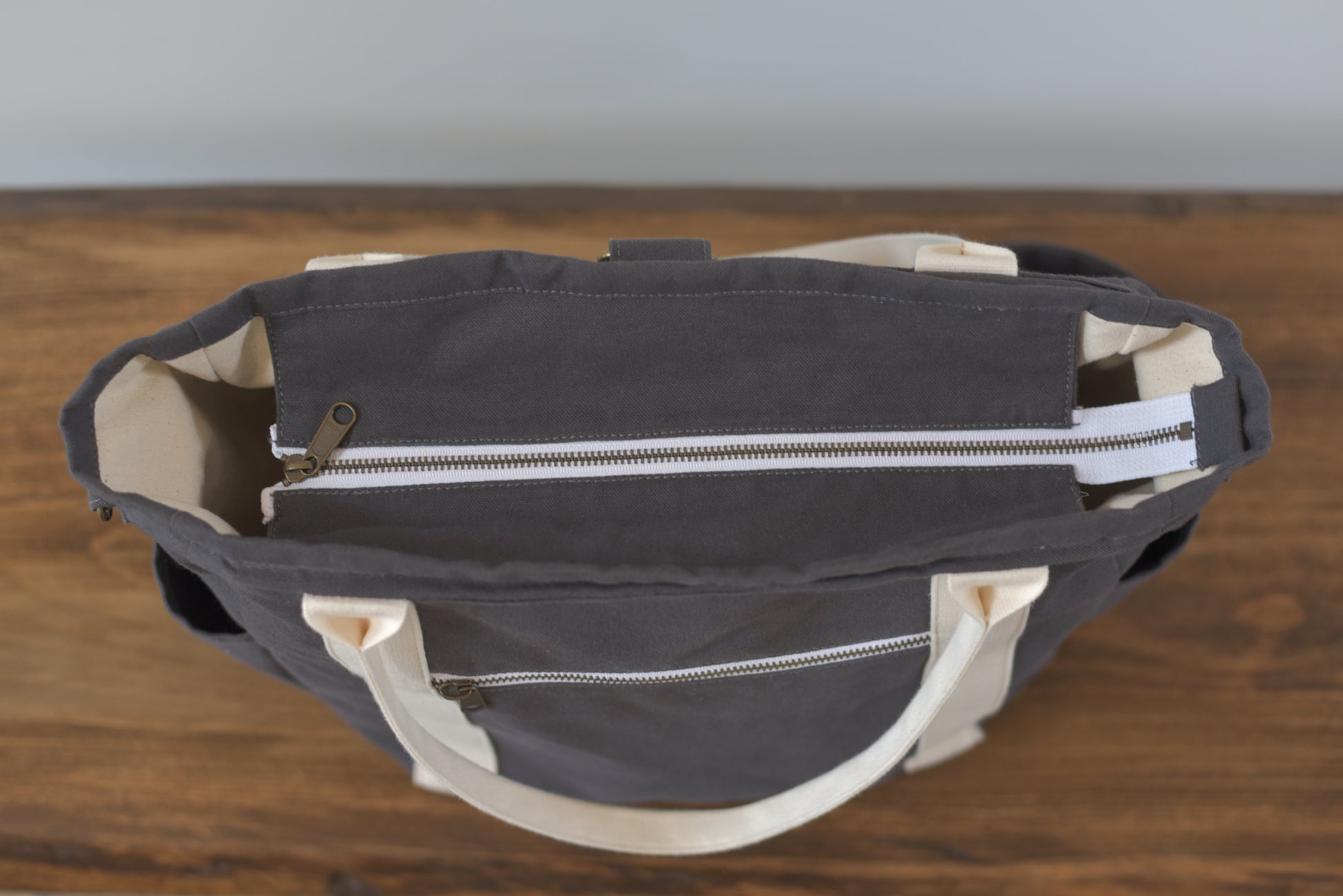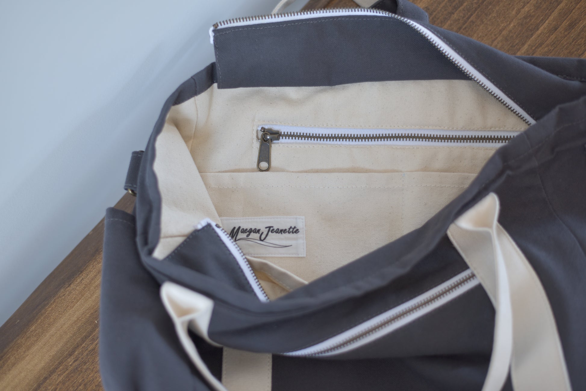 Materials: Cotton canvas , Natural cotton canvas lining, Antique brass hardware
