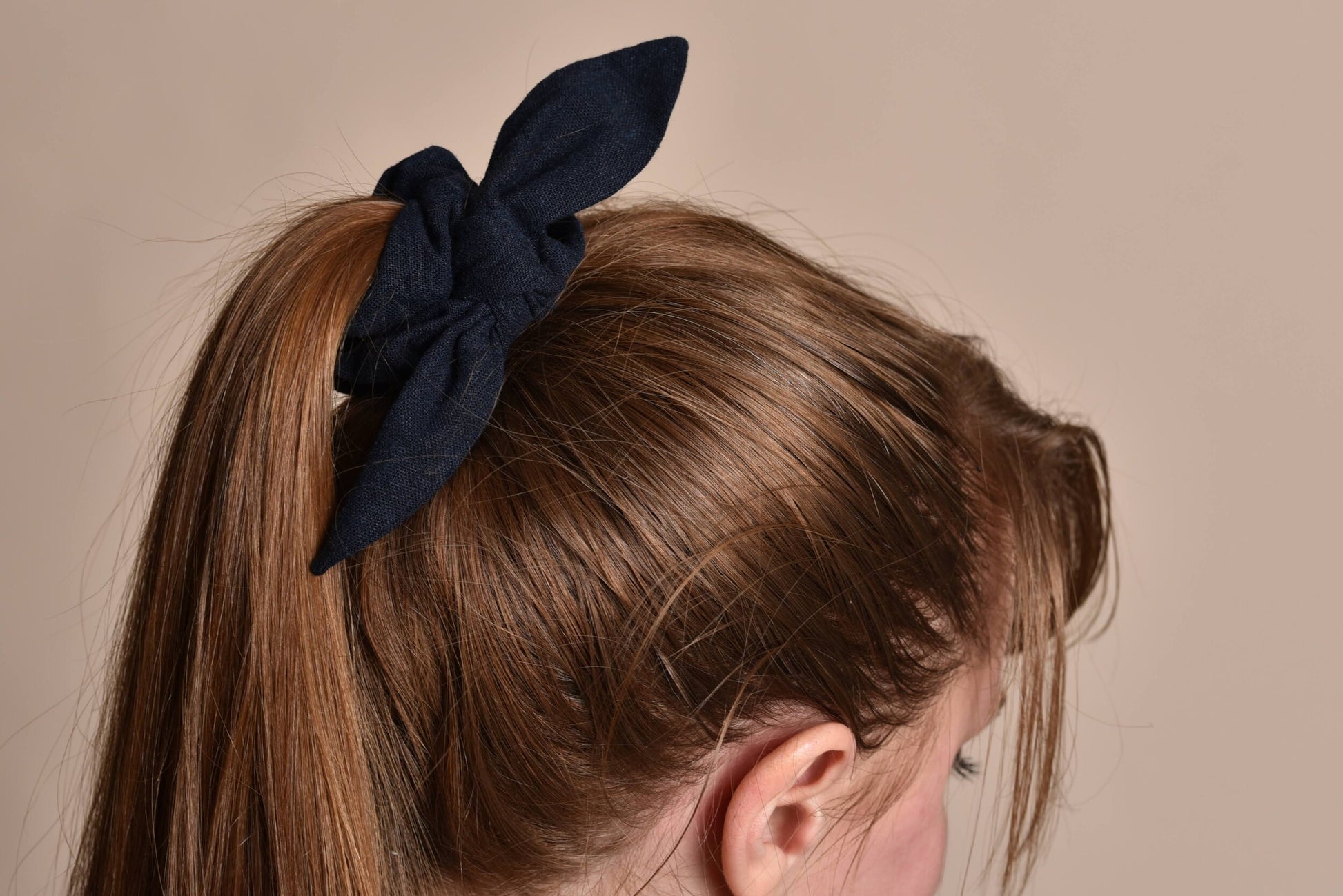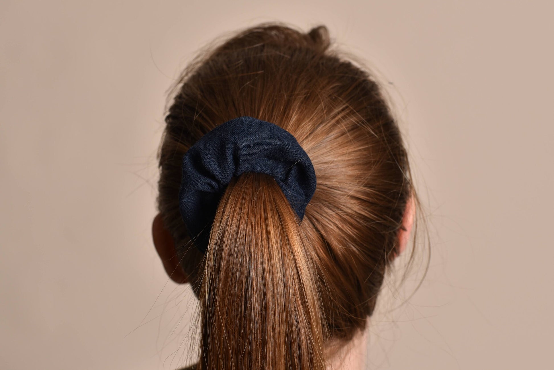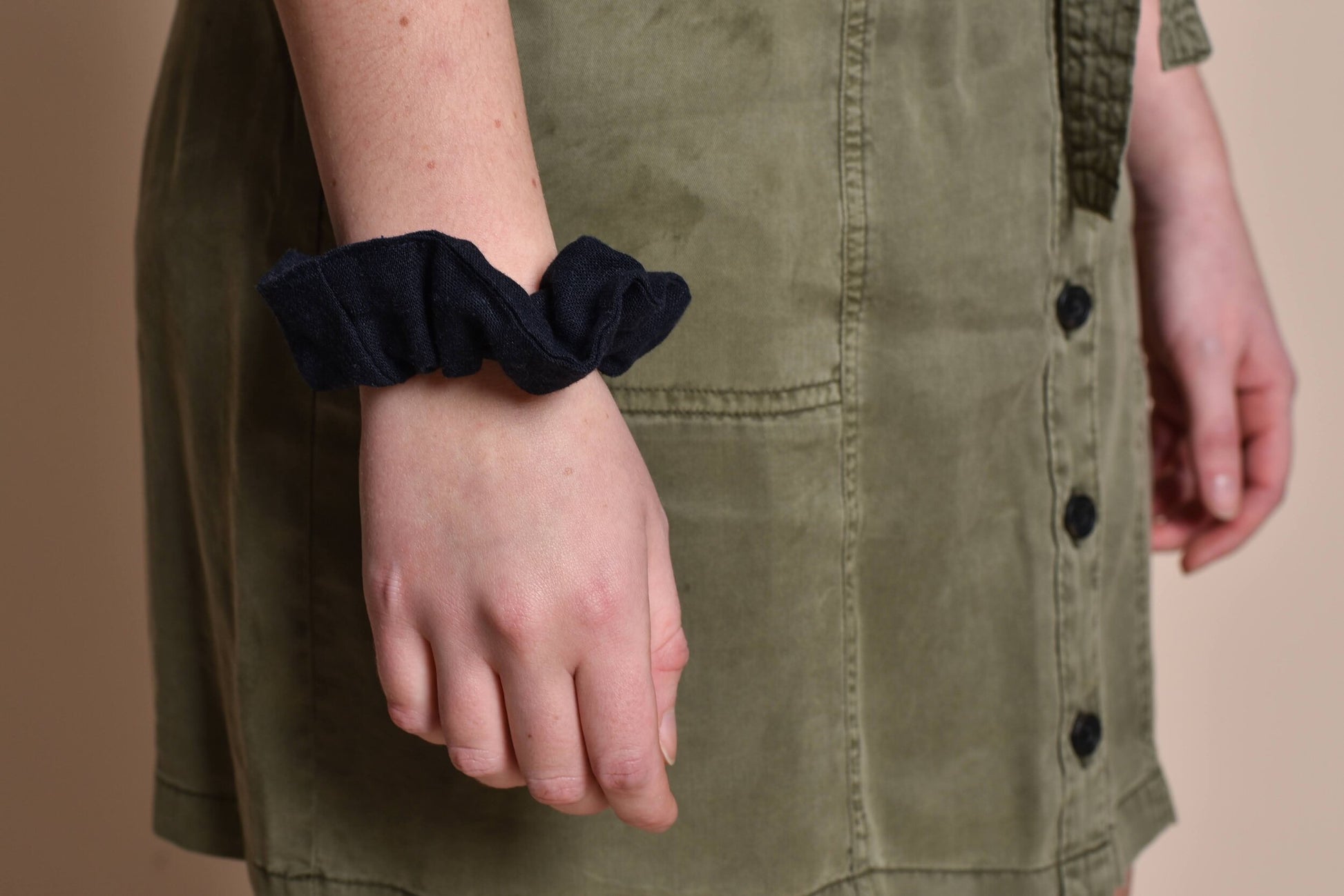 Beautiful full fabric scrunchie fits perfectly around wrist and wraps 2-3 times around hair depending on thickness. Every scrunchie is hand cut & sewn with flat elastic secured inside and stitched for a long lasting accessory you can use time and time again.