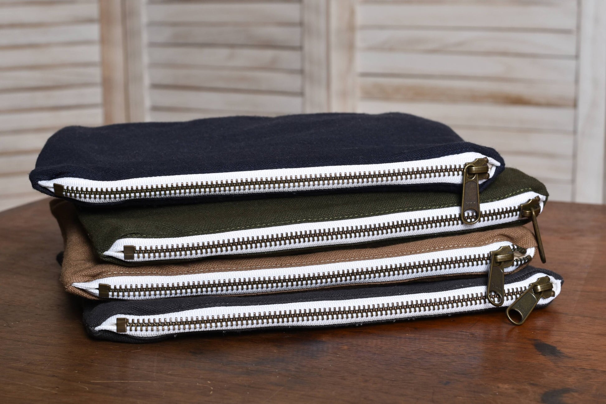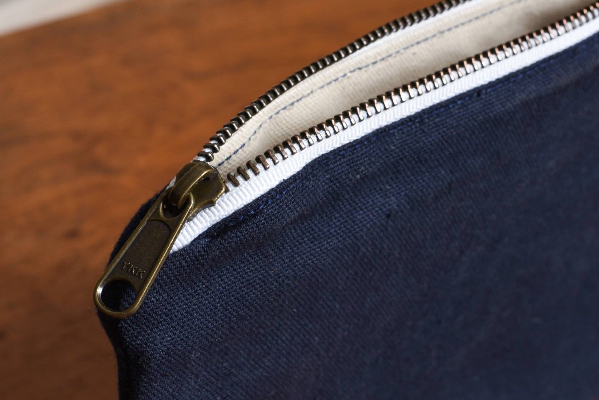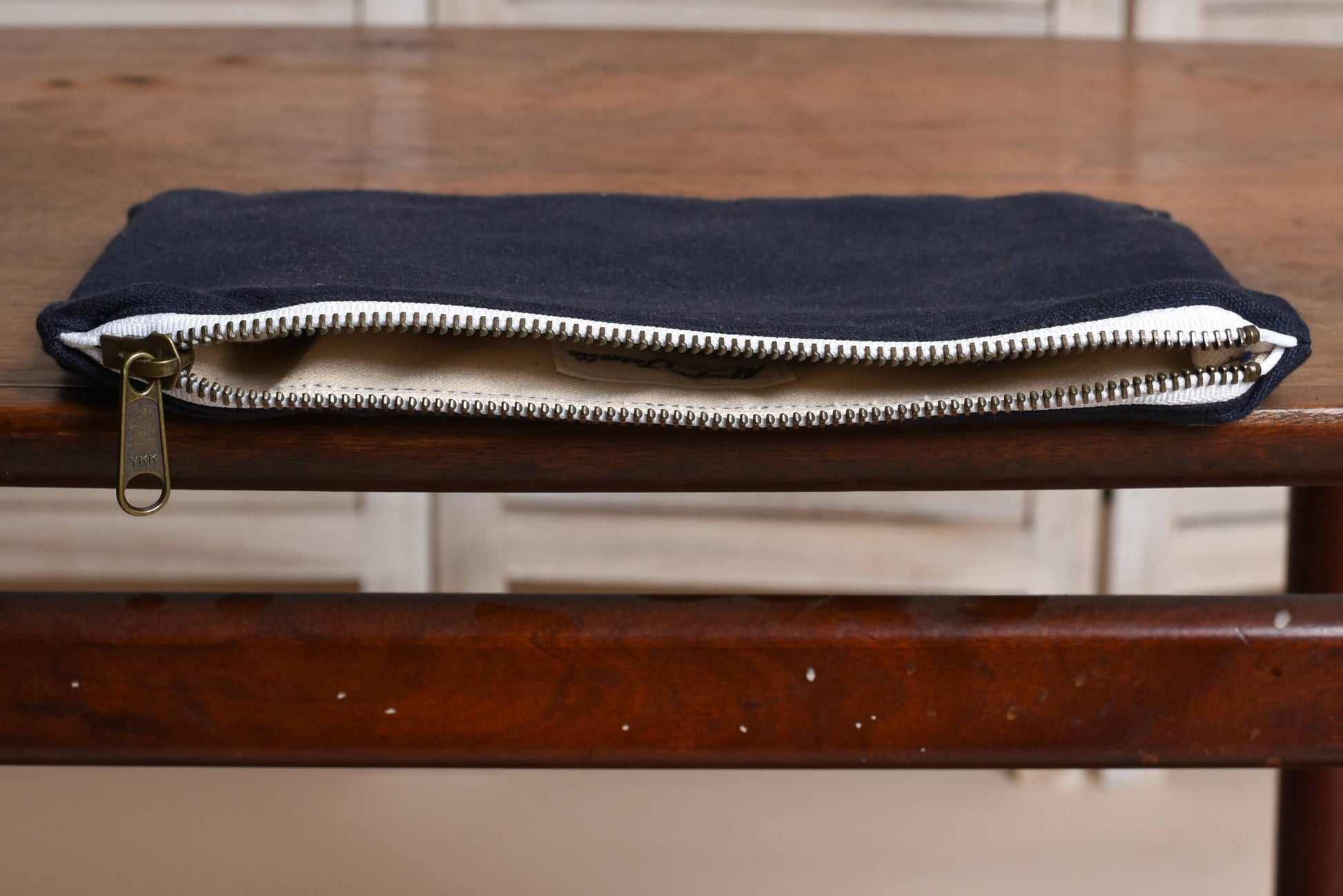 Materials: Cotton canvas, Antique brass zipper