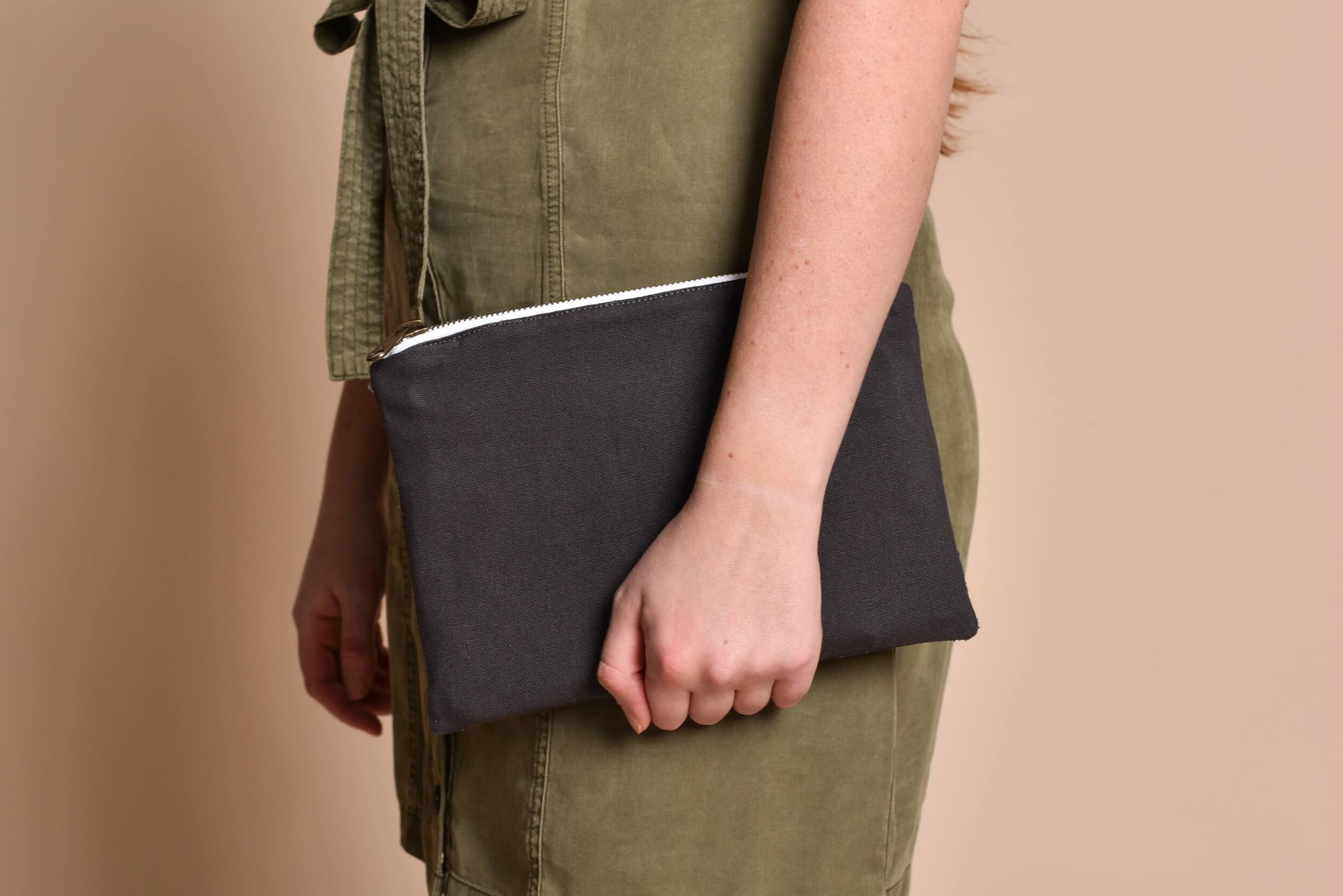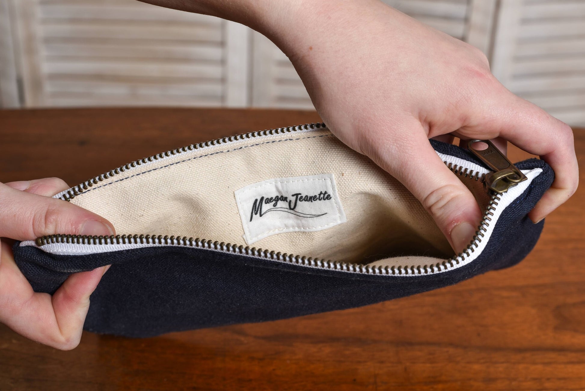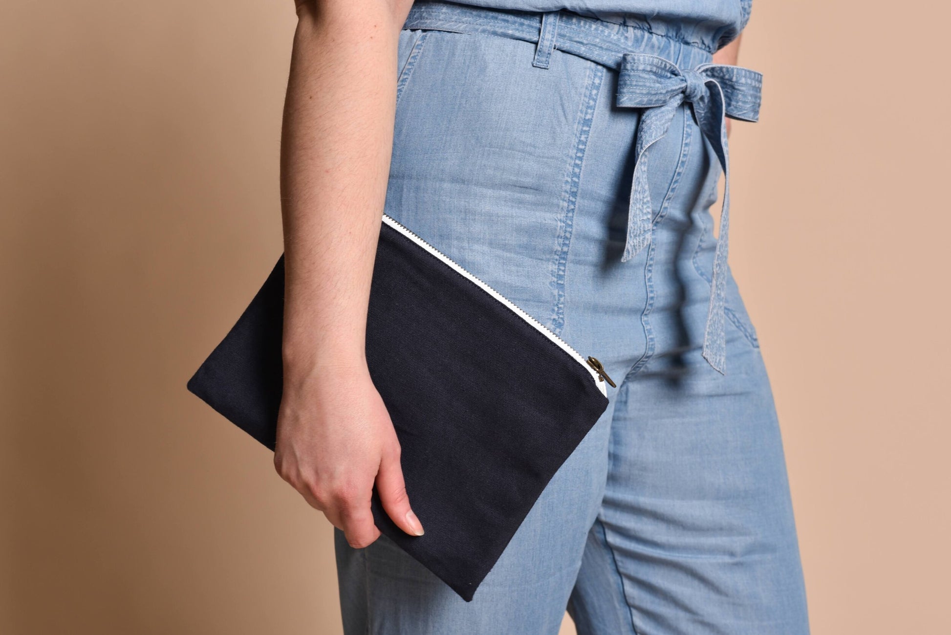 Materials: Cotton canvas, Antique brass zipper
