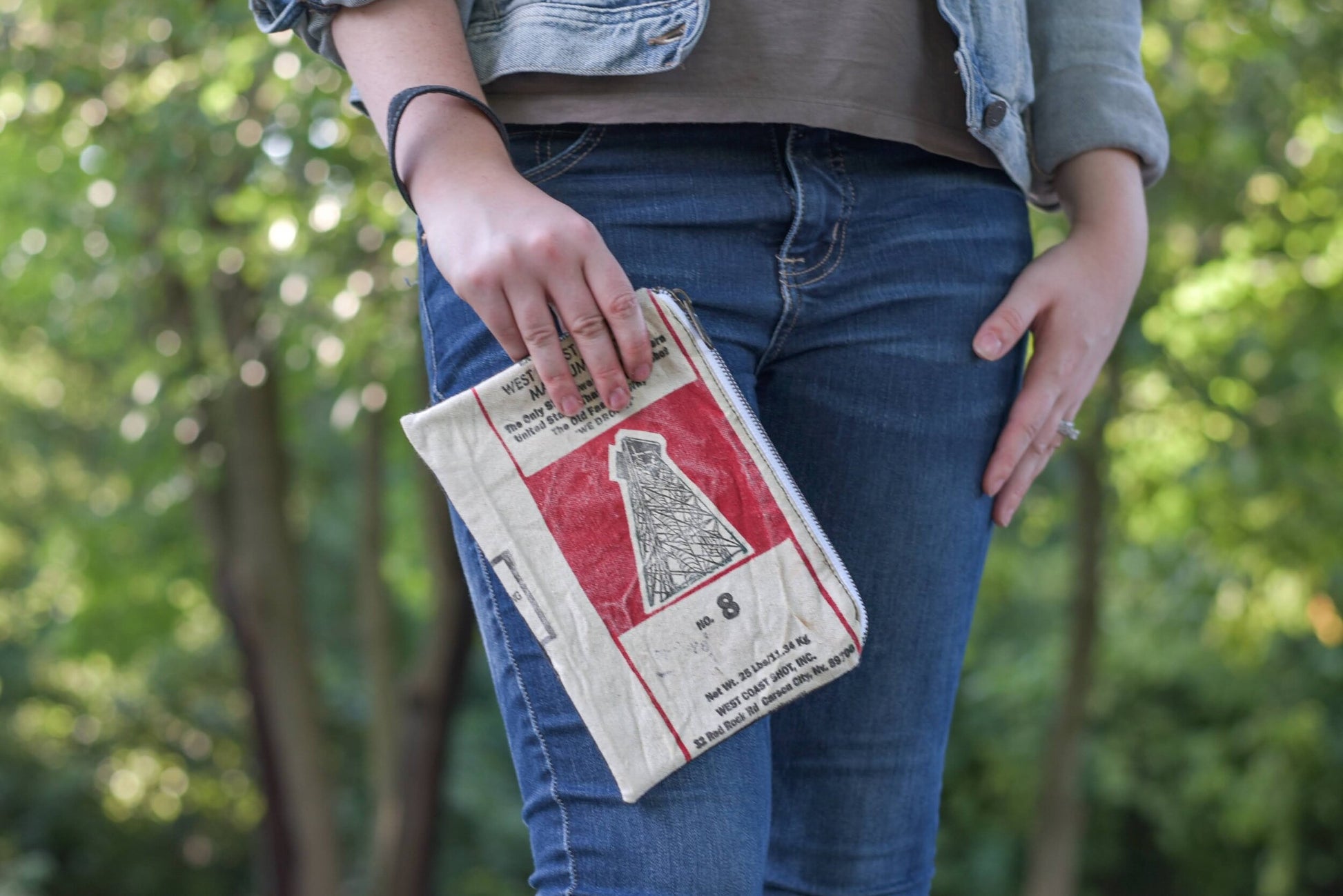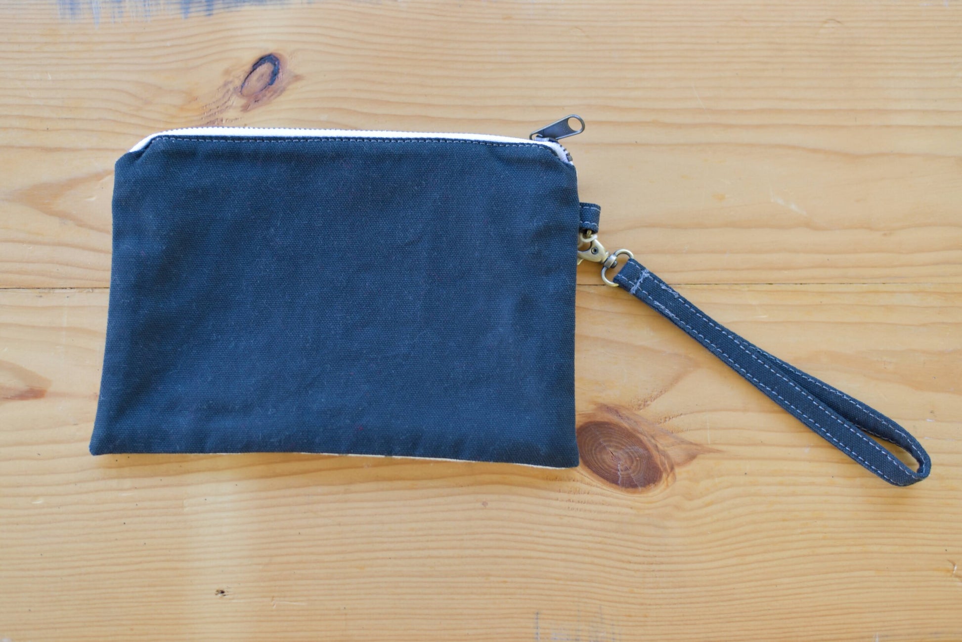 Materials: Reclaimed Shot Bag, Cotton canvas, Antique brass zipper