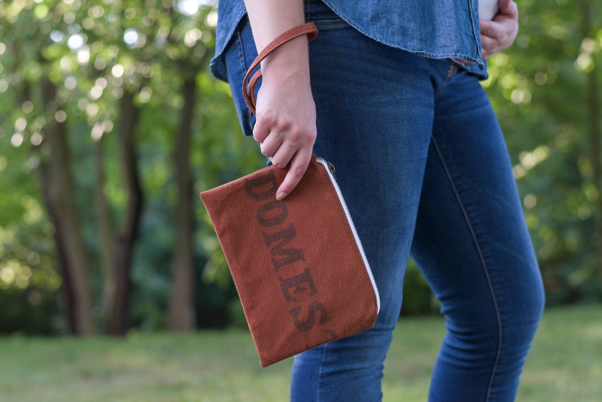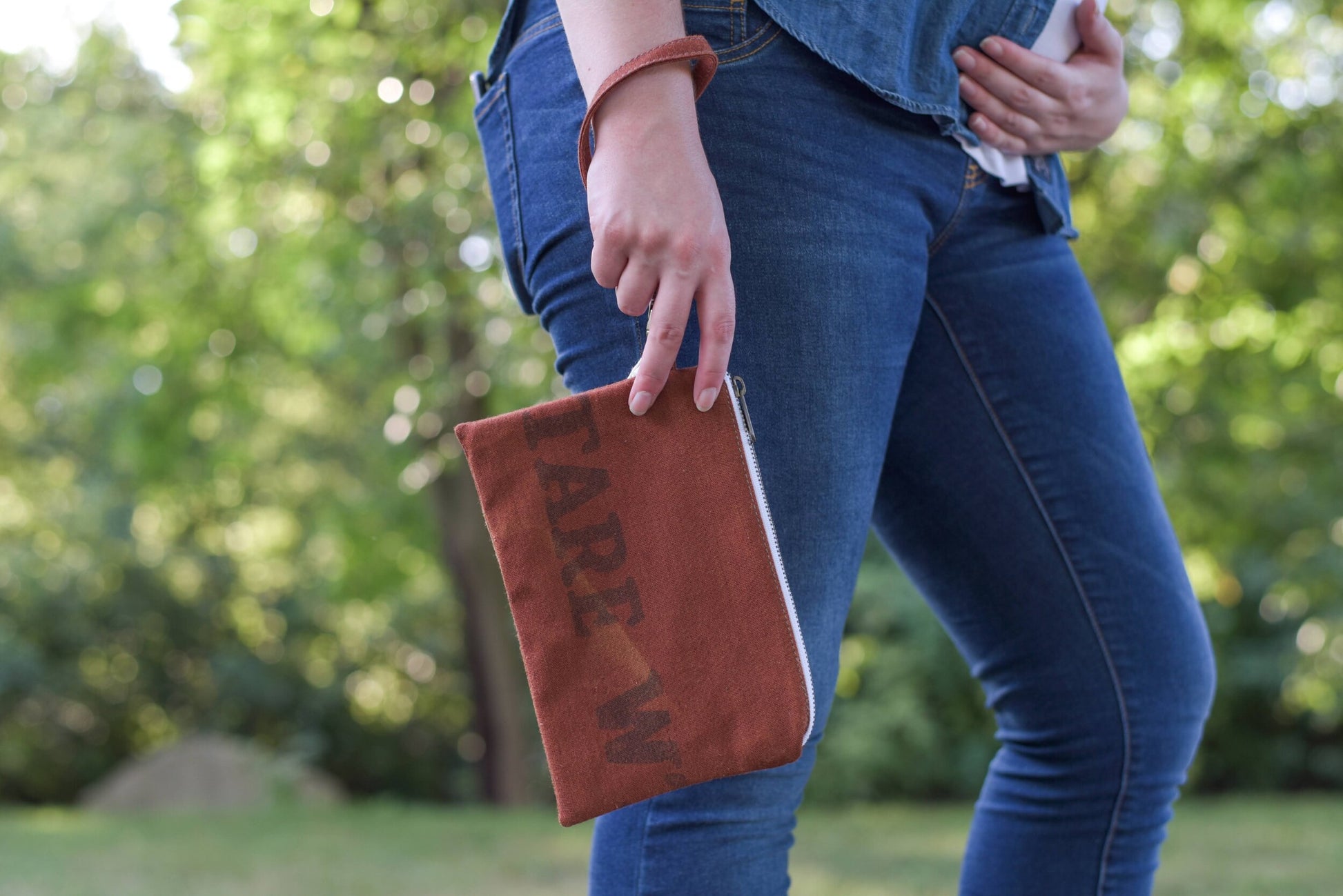 Materials: Reclaimed U.S. Mail Bag, Cotton canvas, Antique brass zipper