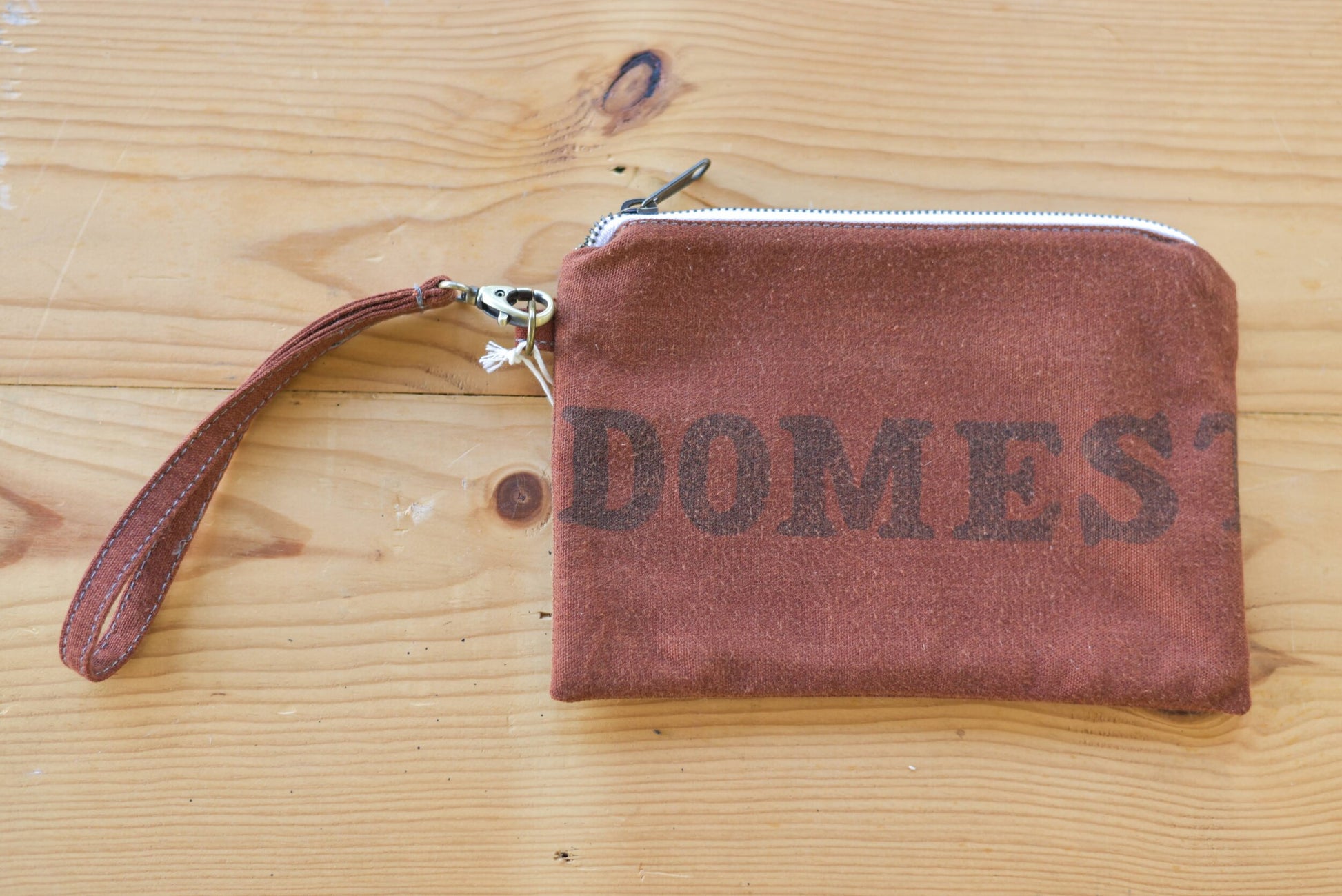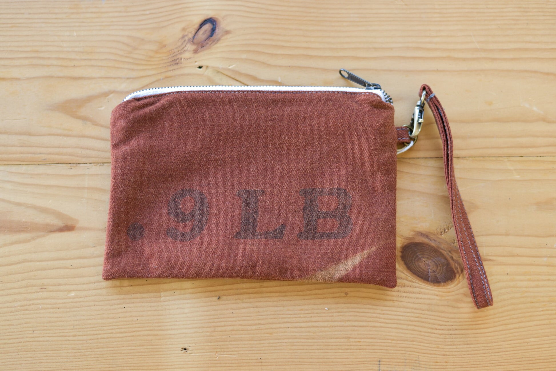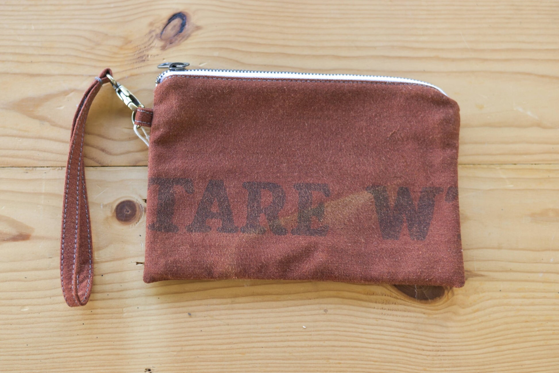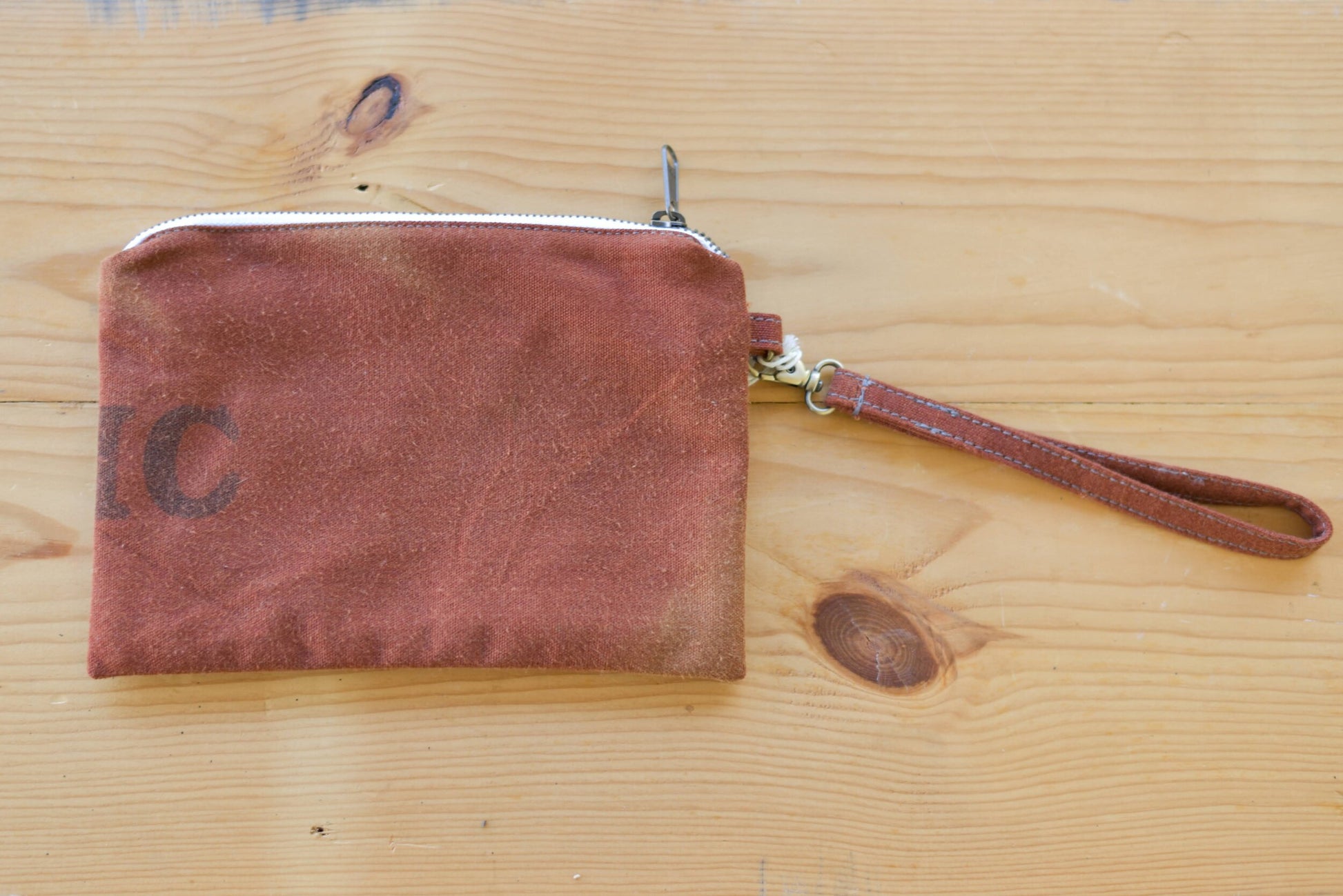 *Note, each wristlet will vary in text and color (mauve to maroon) but all are created from remnants of U.S. Mail Pouches.